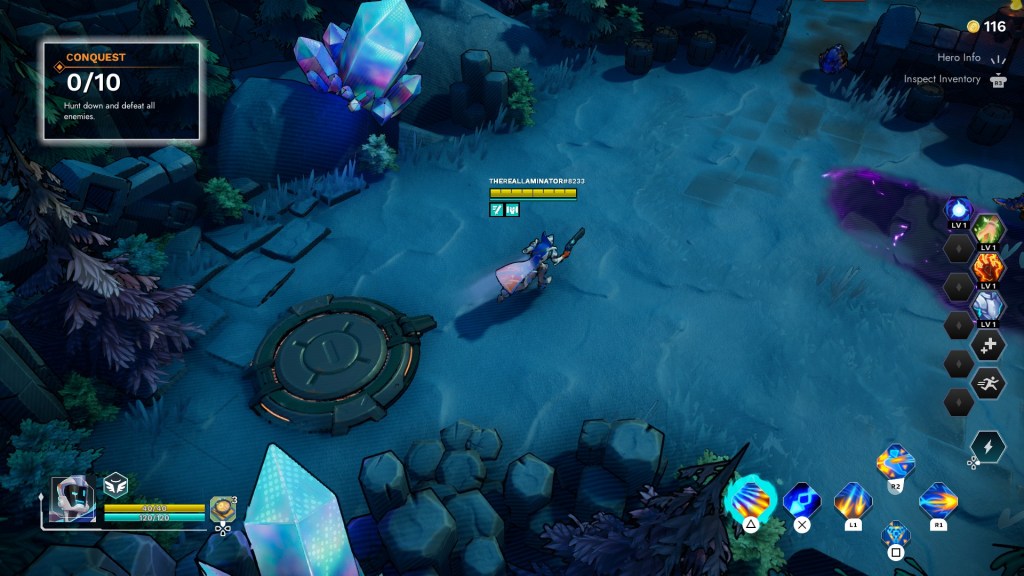 Evercore Heroes: Ascension is a roster-based co-op focused roguelike game where 1-3 players team up to progress through islands filled with enemies and objectives in search of rewards and upgrades. Players fight through several islands, each with their own objectives, enemy compositions and layouts. At the end of each island, players are given a reward and then 1-2 teleporters activate which are marked with the reward type of the next island. After completing enough islands, players must fight through a boss battle after which they are given account rewards which allow them to purchase extra characters.