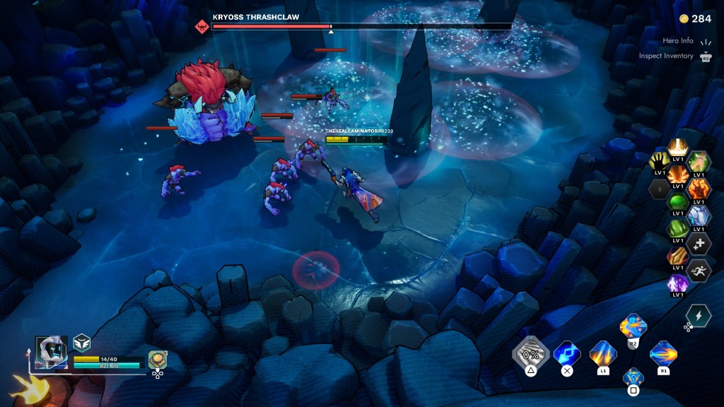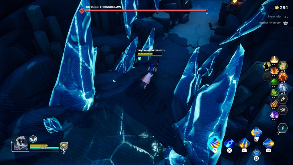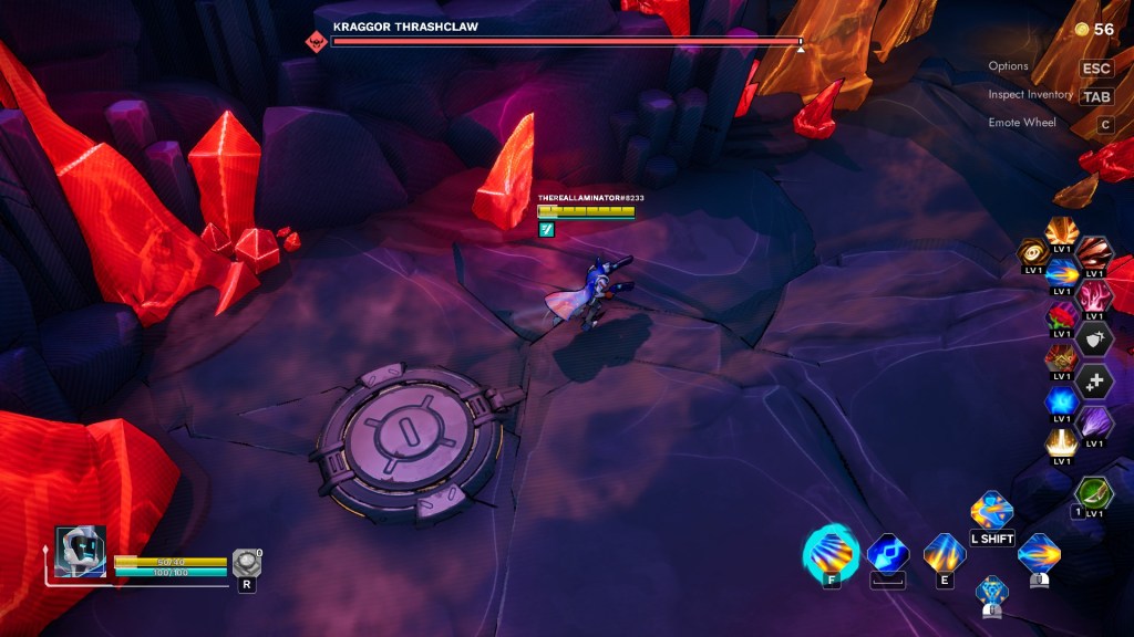 I worked extensively on enemies in general but I’m going to highlight my work on our boss, Thrashclaw and his crystal variation. In the previous version of Evercore Heroes, Thrashclaw and his arena was designed as a competitive race against another team and as such, much of the challenge didn’t come from the boss himself, rather it was the pressure put on by the race to kill it first. Since this aspect of the game was gone, I made changes to the fight to increase the difficulty and make it feel more like a standalone challenge for players to overcome: